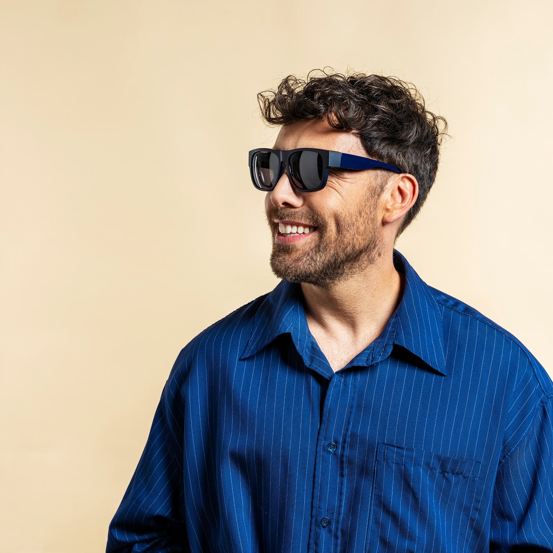 FIT-OVER model OB-1024 fits over any frame up to 142 x 51 mm and turns regular glasses into sunglasses in seconds.